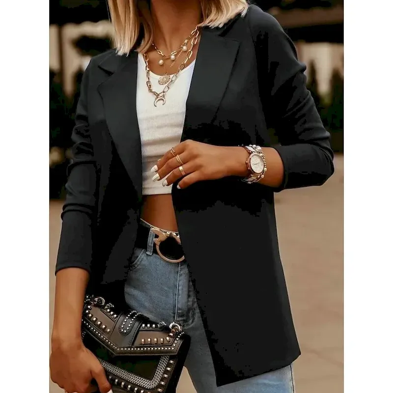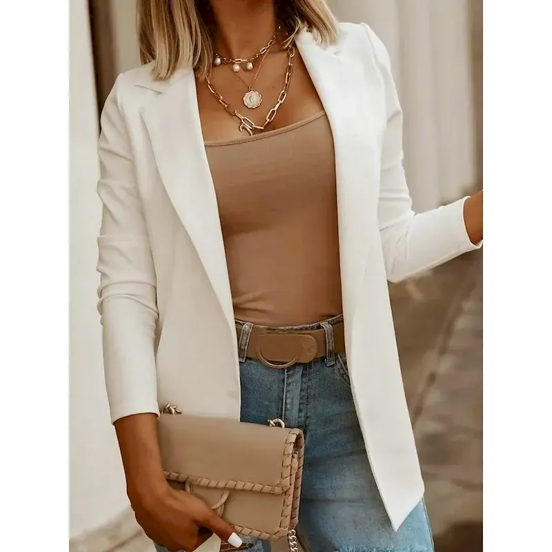 Women’s Casual Jacket Comfortable Breathable Slim Fit Casual Plain Vacation Work Street Casual Open Front Regular Turndown Regular Fit Long Sleeve Outerwear Black White Blue Summer Spring