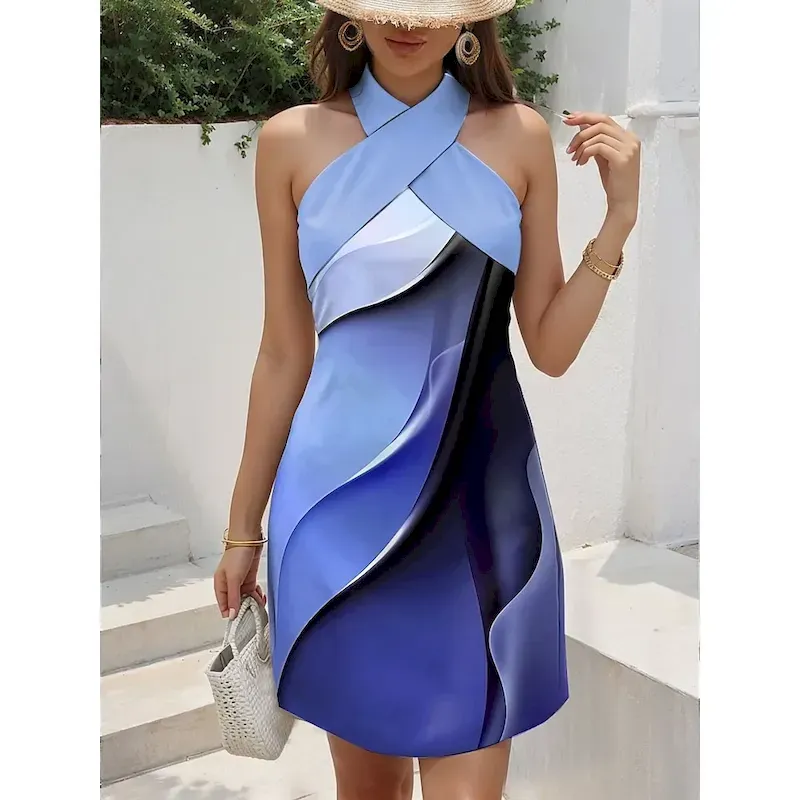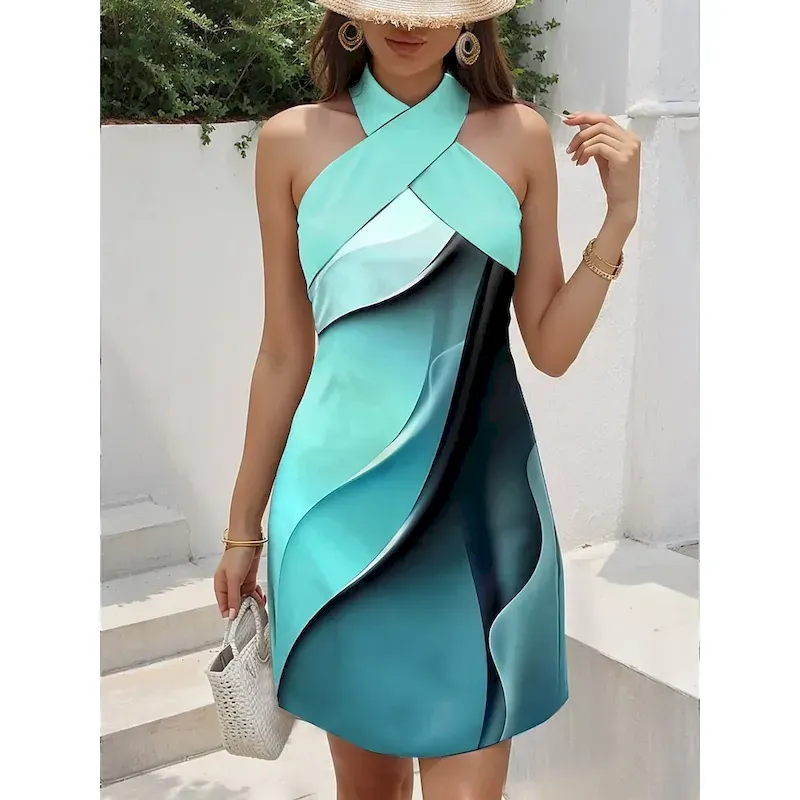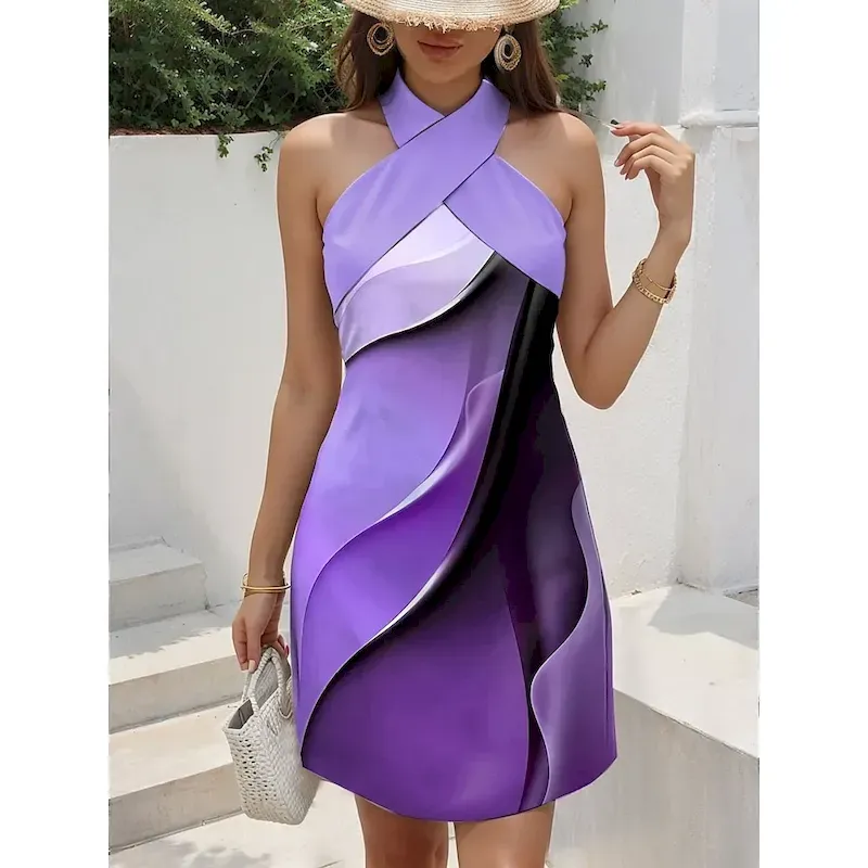 Women’s Mini Dress T Shirt Dress Tee Dress Sundress A Line Dress Vacation Casual Going out Regular Fit Ombre Graphic Geometric Sleeveless Halter Neck Pink Blue Purple Green Summer