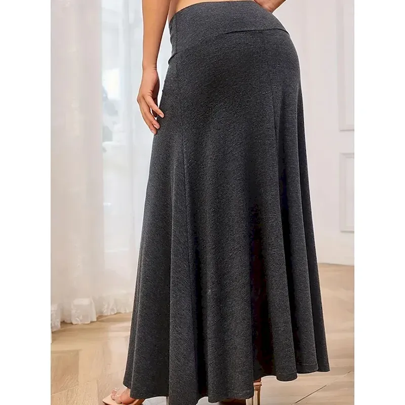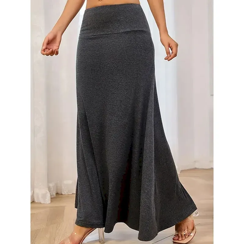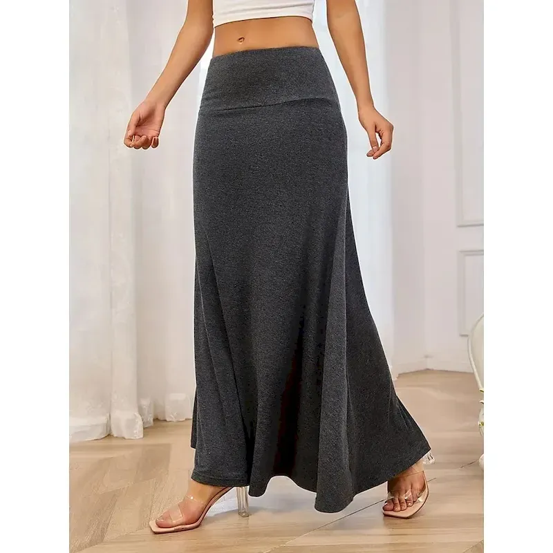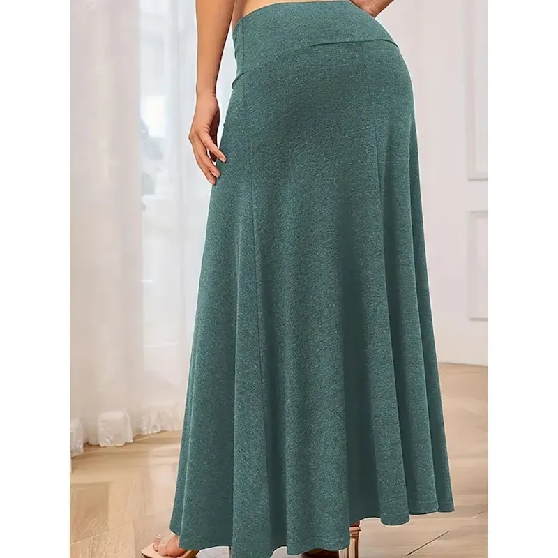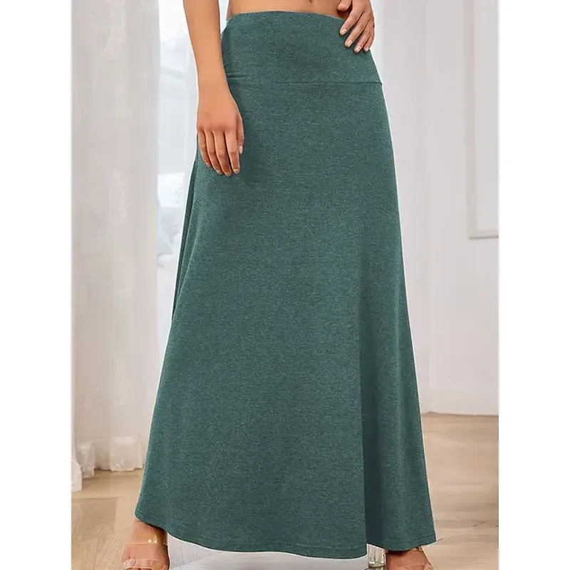 Women’s Skirt A Line Fashion Casual Maxi High Waist Skirts Plain Knitting Stretchy Street Daily Wine Sage Green Black Army Green Spring Knit Polyester