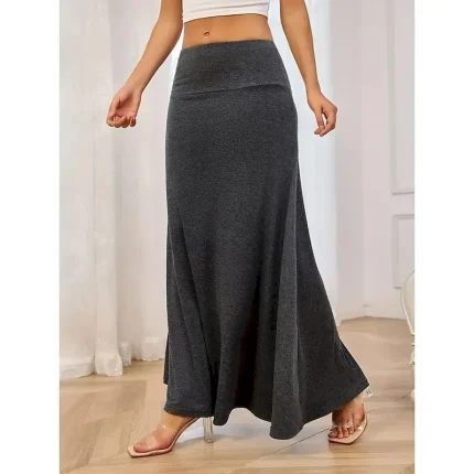 [Silhouette]: The high-waisted design of this skirt flatters the figure with its sleek and streamlined cut. It hugs the waist and flows effortlessly into a graceful, full-length silhouette, offering both sophistication and style.